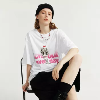 Pink Cat Graffiti Print Loose Fit Summer T-Shirt